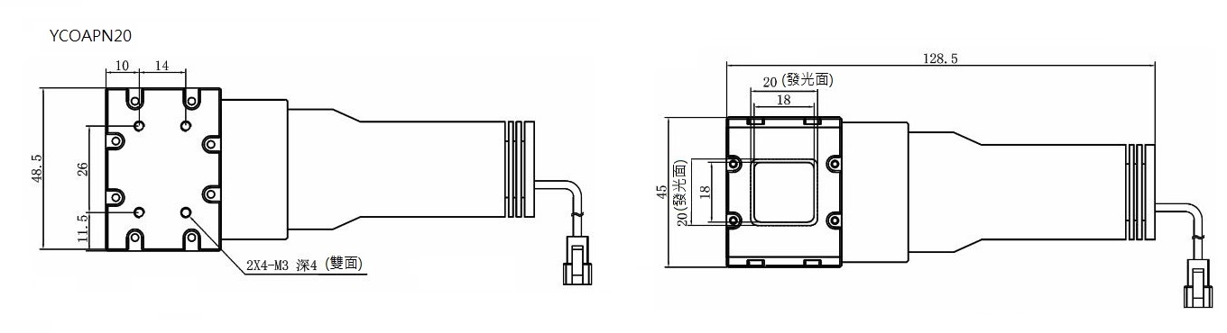 | 1 | YCOAPN20 | ●紅色 ●綠色 ●藍色 ○白色 | 0-80 | 20x20 | 24 | 1 | 1.5 | 48.5x45x128.5 |
